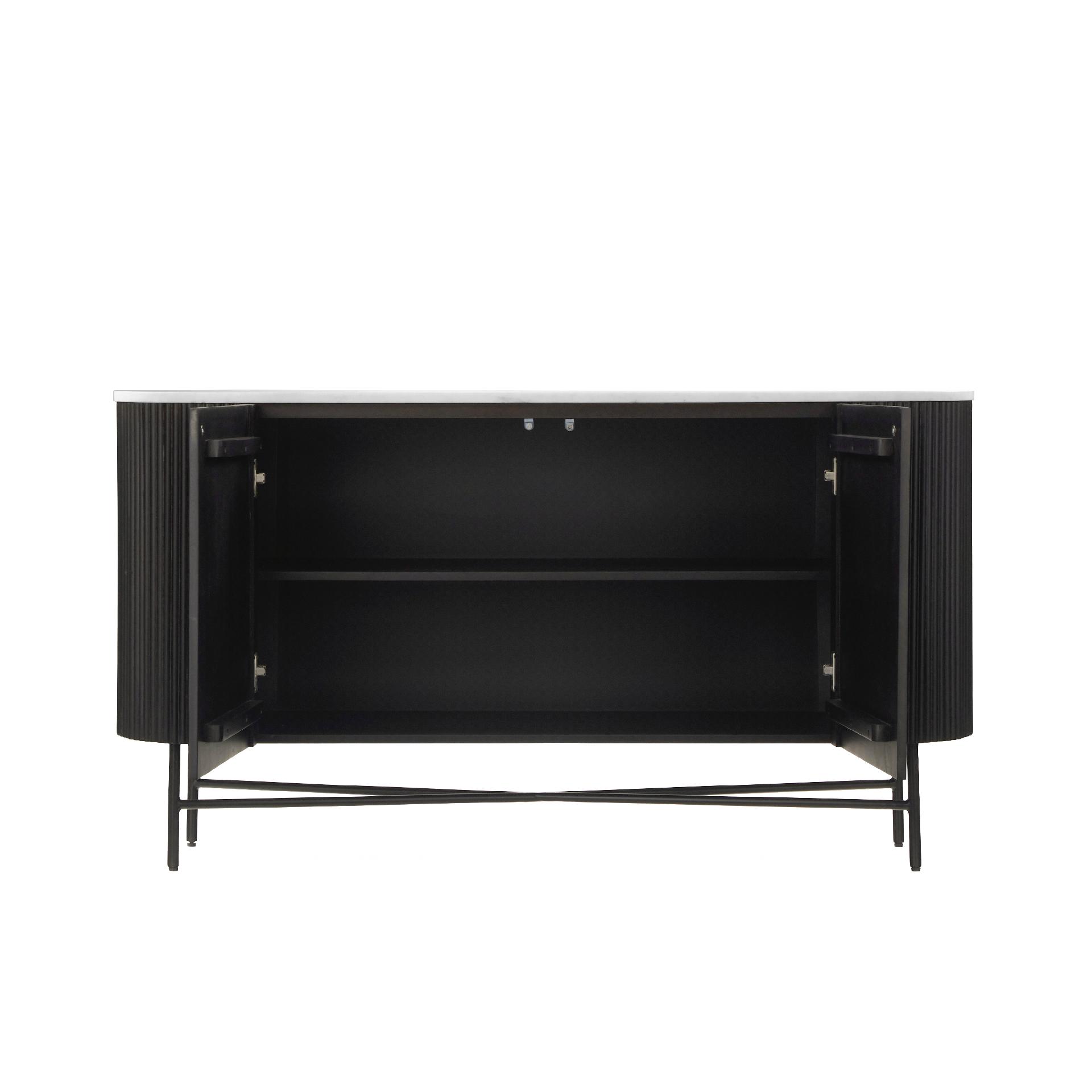 The Louis Collection combines exquisite craftsmanship with modern design details, creating pieces that are as functional as they are stylish. Push the seamlessly integrated doors to reveal solid mango shelves offering generous storage space, enhanced by soft-closing mechanisms for a smooth, quiet experience. The striking solid marble top provides a hygienic surface and adds an eye-catching modern twist to any interior.