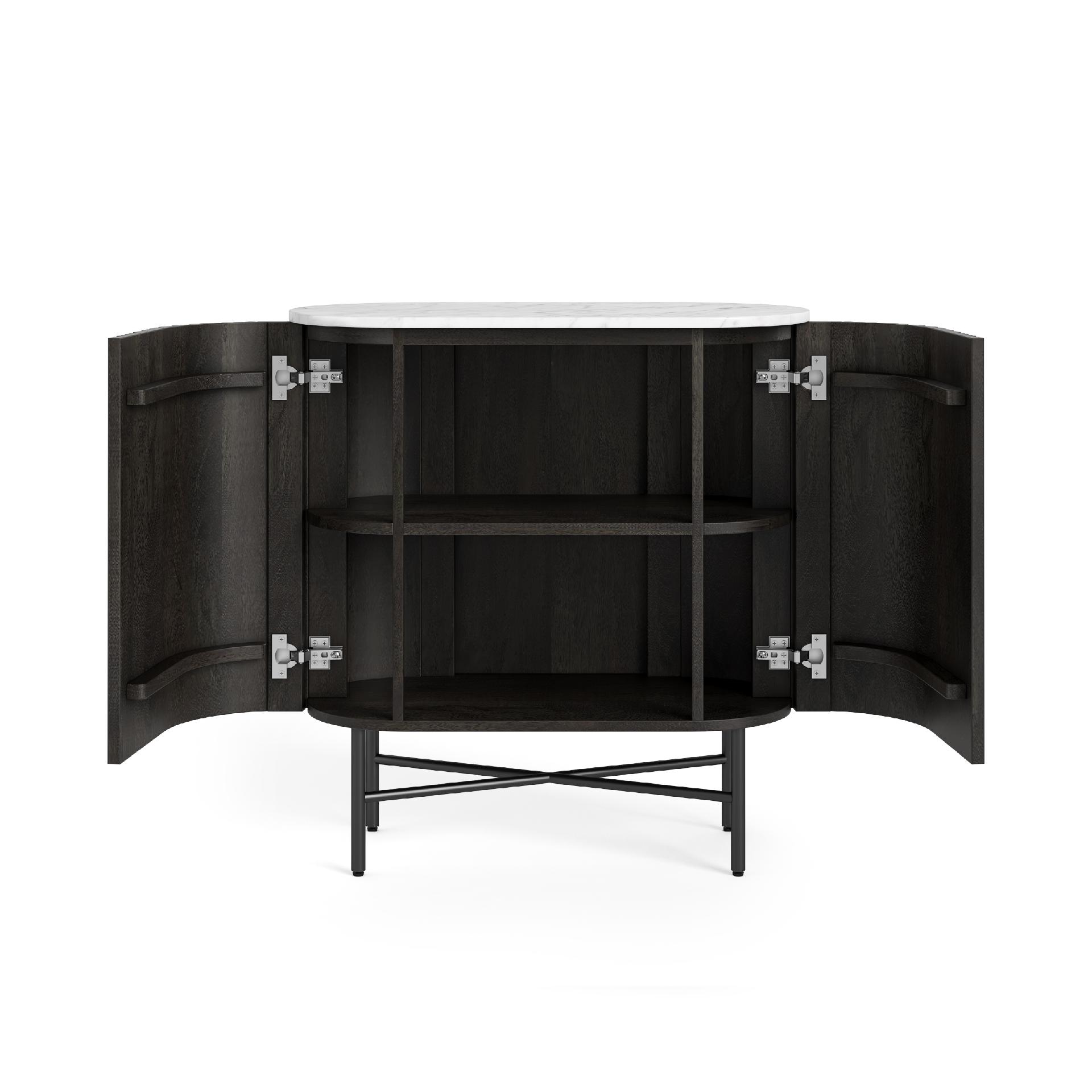 The Louis Collection combines exquisite craftsmanship with modern design details, creating pieces that are as functional as they are stylish. Push the seamlessly integrated doors to reveal solid mango shelves offering generous storage space, enhanced by soft-closing mechanisms for a smooth, quiet experience. The striking solid marble top provides a hygienic surface and adds an eye-catching modern twist to any interior.